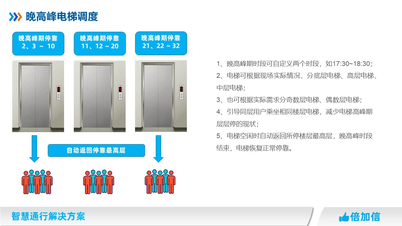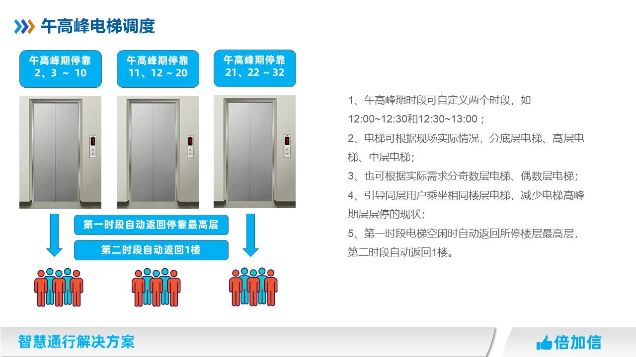 4、引導同層用戶乘坐相同樓層電梯,減少電梯高峰期層層停的現狀;