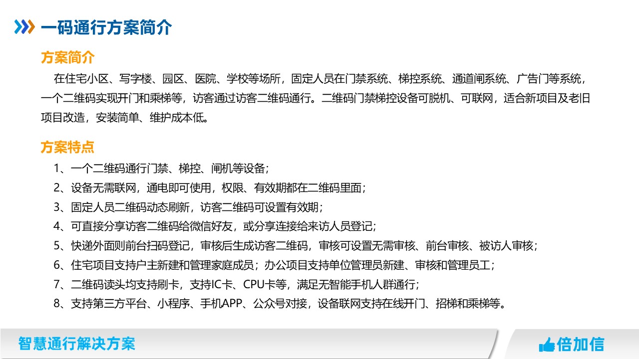 1、一個二維碼通行門禁、梯控、閘機等設(shè)備;