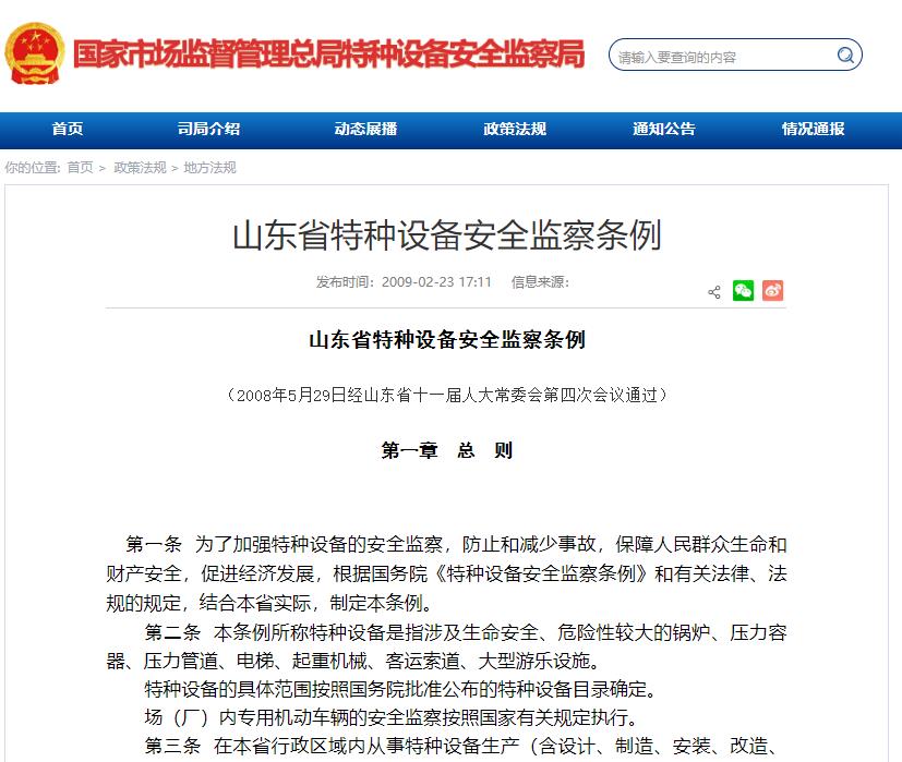 《山東省特種設(shè)備安全監(jiān)察條例》2008年5月29日經(jīng)山東省十一屆人大常委會第四次會議通過