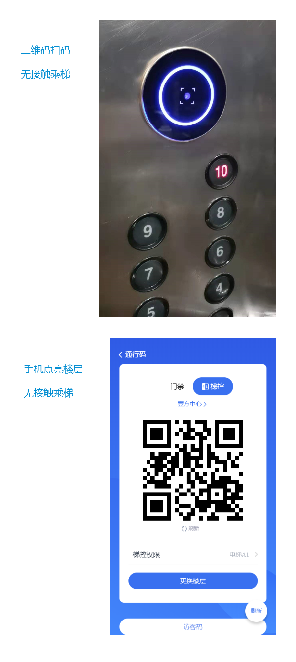 手機(jī)無接觸乘梯:授權(quán)用戶可通過手機(jī)者微信小程序,進(jìn)入電梯或在電梯內(nèi)操作手機(jī)點(diǎn)亮需要去的樓層,可以手機(jī)點(diǎn)亮去的樓層,可以掃碼點(diǎn)亮樓層。