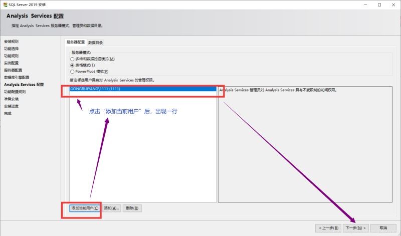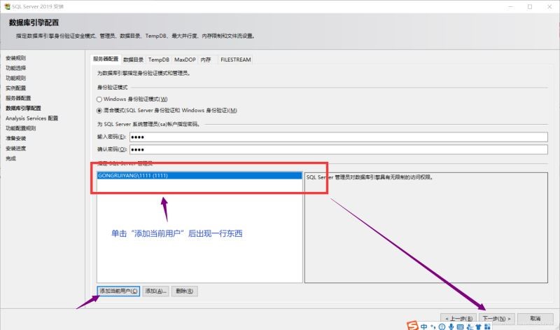 填好密碼后,點擊添加當前用戶,出現下面界面,再單擊下一步