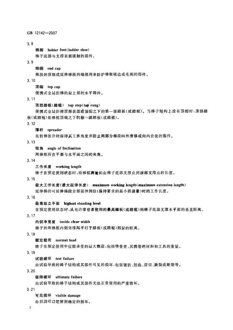 《便攜式金屬梯安全要求 GB 12142-2007》國家質量監(jiān)督檢驗檢疫總局、國家標準化管理委員會