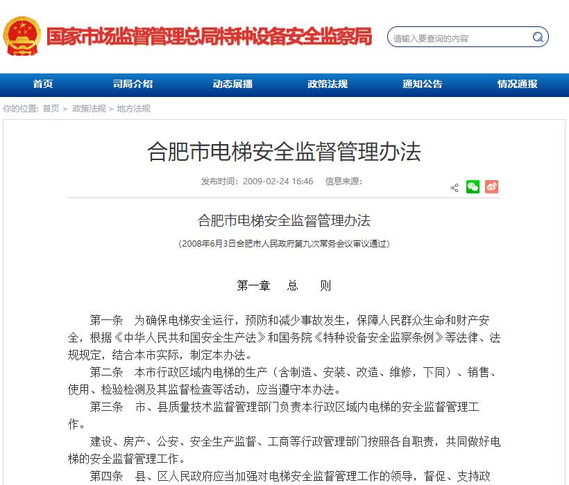 合肥市電梯安全監(jiān)督管理辦法