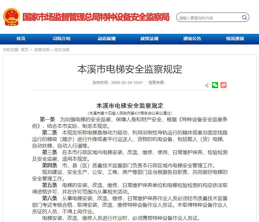 《本溪市電梯安全監察規定》本溪市第十四屆人民政府第4次常務會議審議